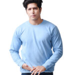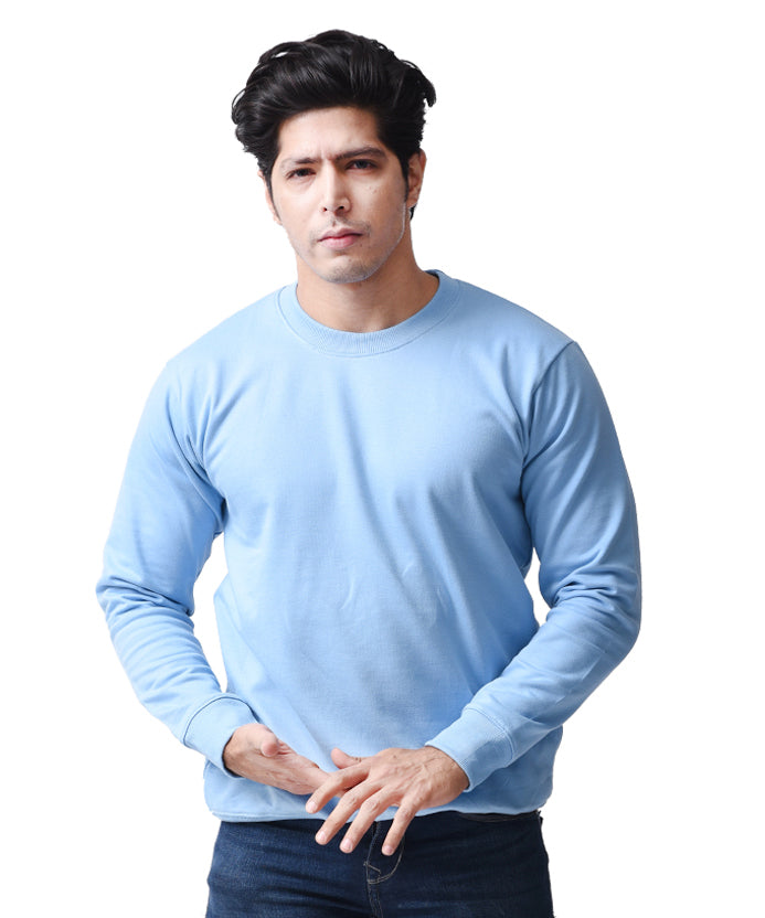 Sky blue solid sweatshirt, both side pocket, long sleeves, straight hem.