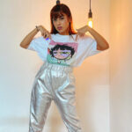 White printed T-shirt, has a round neck, and short sleeves